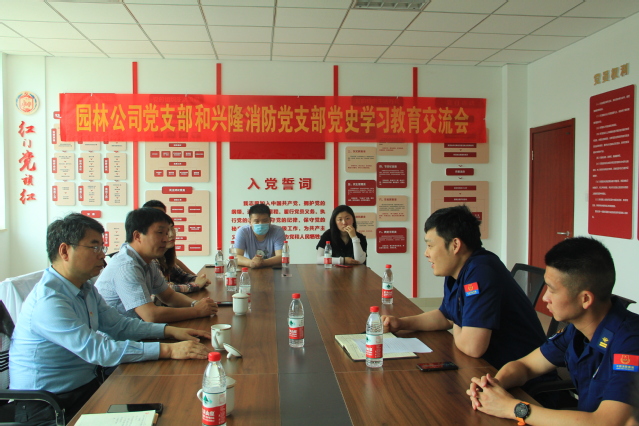 首先開(kāi)始的是黨史學(xué)習(xí)教育交流會(huì),雙方就黨建品牌培育工作進(jìn)行了交流,興隆消防黨支部在建鄴消防救援大隊(duì)“紅門黨旗紅”黨建品牌建設(shè)牽引下,強(qiáng)堡壘、抓作風(fēng)、帶隊(duì)伍,保障了中心任務(wù)。園林公司黨支部以“鑄紅心·享園林”黨建品牌建設(shè)為牽引,凝聚思想、開(kāi)拓創(chuàng)新,推動(dòng)公司高質(zhì)量發(fā)展。之后,雙方就黨史學(xué)習(xí)教育開(kāi)展情況進(jìn)行了交流,并提出要進(jìn)一步發(fā)揮雙方優(yōu)勢(shì)和特長(zhǎng),加強(qiáng)交流與協(xié)作,雙向促進(jìn)、共同提高。