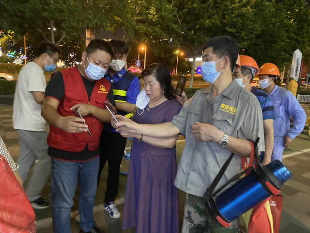 會后,集團(tuán)迅速組織黨員干部組成志愿者隊(duì)伍,聯(lián)系建鄴區(qū)認(rèn)領(lǐng)疫情防控志愿工作,趕赴多個社區(qū)協(xié)助防疫一線的核酸檢測工作。集團(tuán)志愿者隊(duì)伍每組都由集團(tuán)部室、公司負(fù)責(zé)人帶隊(duì),進(jìn)入工作現(xiàn)場后,他們迅速熟悉掌握工作要求,立即上崗?fù)度胫驹阜?wù)。引導(dǎo)前來進(jìn)行檢測的市民嚴(yán)守疫情防控要求有序排隊(duì)進(jìn)場,安撫待檢人員相互配合支持,指導(dǎo)幫助登記掃碼加快工作速度,為老人和困難市民提供方便服務(wù)……在他們與其他志愿者的共同努力下,這幾個檢測點(diǎn)都秩序井然,有效推進(jìn)了檢測速度,減少了市民等待時間。志愿者們把保障核酸檢測有序高效推進(jìn)作為此時踐行初心使命的擔(dān)當(dāng),忘記了炎熱夏夜忙碌的一身汗水,忘記了蚊蟲繞身不停的叮咬,為筑起群眾生命健康防線獻(xiàn)出了一份力量。