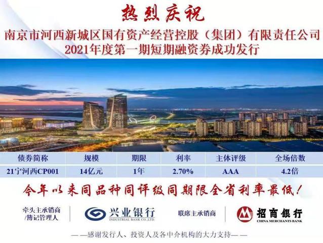 南京市河西新城區(qū)國有資產經營控股(集團)有限責任公司(以下簡稱“河西集團”)成功發(fā)行2021年度第一期短期融資債券。