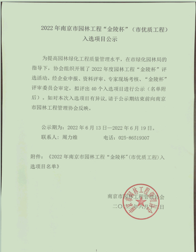 近日,由河西集團(tuán)新城公司溧水項(xiàng)目部代建的溧水區(qū)秦淮大道改造景觀提升工程順利通過南京市園林工程管理協(xié)會(huì)組織的金陵“”評(píng)審,成功入選2022年南京市園林工程“金陵杯”(市優(yōu)質(zhì)工程)項(xiàng)目名單。