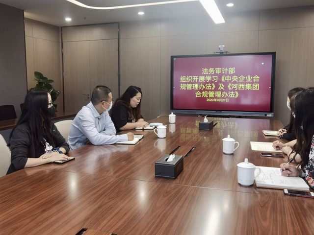 為更好地履行合規(guī)管理職能、提升集團(tuán)整體合規(guī)管理水平,近日,河西集團(tuán)法務(wù)審計(jì)部全體人員共同學(xué)習(xí)《中央企業(yè)合規(guī)管理辦法》(以下簡稱《辦法》,該《辦法》于2022年8月23日公布,并于2022年10月1日起施行)。