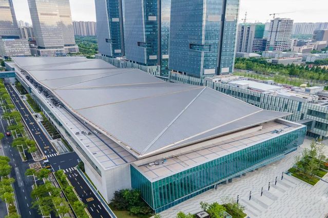 南京國(guó)際博覽中心三期1#樓及大地下室工程位于南京河西新城區(qū),北側(cè)緊鄰南京國(guó)際博覽中心一、二期展館,總建筑面積約21萬(wàn)㎡,地上2層,建筑面積約7萬(wàn)㎡,由展廳、商業(yè)、卸貨區(qū)等用房組成;地下2層,建筑面積約14.2萬(wàn)㎡,為車(chē)庫(kù)、設(shè)備用房等。工程于2017年4月20日開(kāi)工,2021年2月1日竣工??⒐ず螅游骷瘓F(tuán)所屬南京國(guó)際博覽中心一、二、三期場(chǎng)館延江東中路連成一片,以華東最大的會(huì)展中心展現(xiàn)在世人眼前。
