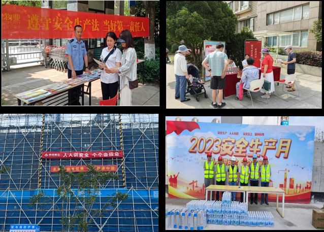 結(jié)合今年“安全生產(chǎn)月”的主題,集團(tuán)通過一系列宣傳活動(dòng)把“安全生產(chǎn)月”的要求和精神傳導(dǎo)到基層,組織下屬公司策劃了多個(gè)深入基層一線、群眾喜聞樂見的宣傳活動(dòng)。物業(yè)公司舉辦講座6場(chǎng),懸掛橫幅48條,布置海報(bào)架或張貼海報(bào)33張,派發(fā)宣傳單800余份,持續(xù)不斷增強(qiáng)活動(dòng)影響力,形成了階段性宣傳熱潮;紫金商管公司成立義務(wù)宣傳小組,重點(diǎn)在社區(qū)中心、商業(yè)街區(qū)、裝修工地懸掛橫幅10余幅,現(xiàn)場(chǎng)發(fā)放安全生產(chǎn)小貼士、消防逃生小知識(shí)、滅火器使用方法等安全知識(shí)宣傳冊(cè)共計(jì)500余份;新城公司設(shè)計(jì)制作了安全生產(chǎn)管理宣傳單以及現(xiàn)場(chǎng)應(yīng)急救援知識(shí)折頁(yè),將安全生產(chǎn)防范知識(shí)傳遞到每個(gè)項(xiàng)目、每個(gè)工人。